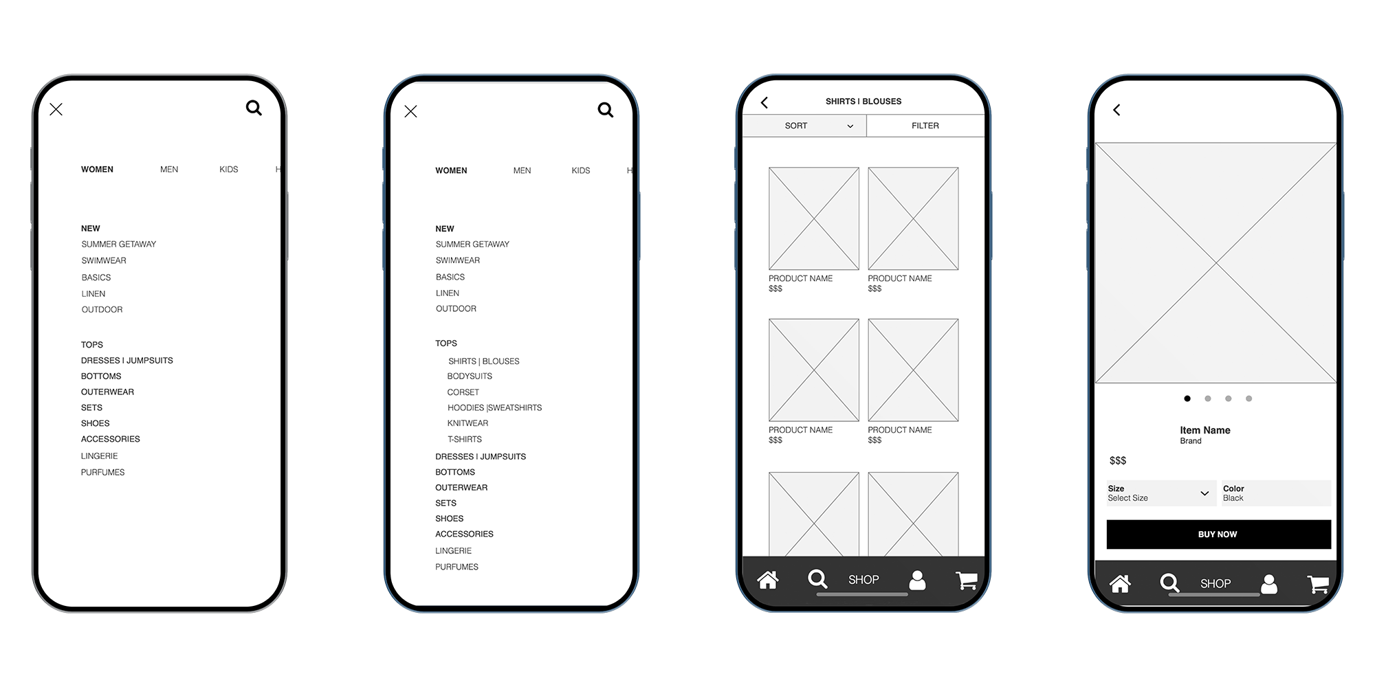 Created structured information architecture and way-finding throughout the e-commerce system. Adaptive screens enhance consistency, benefiting the user experience by directing people to their destination faster and more efficiently.