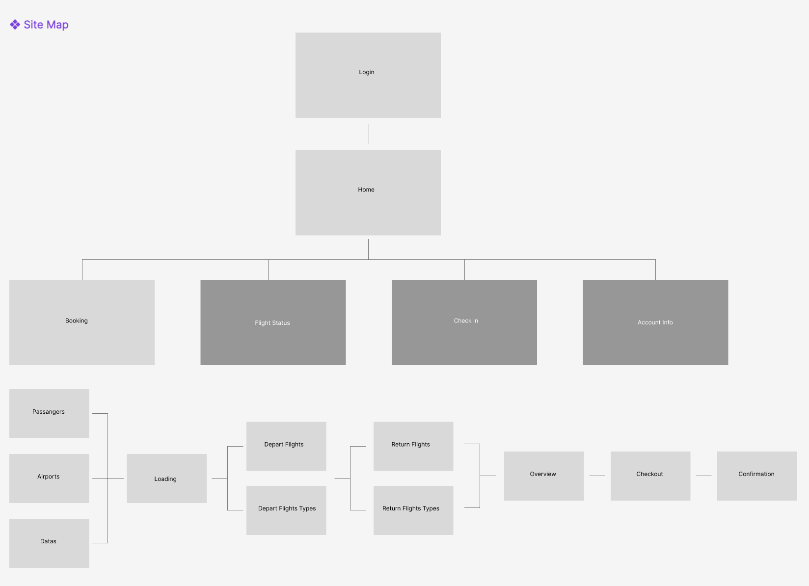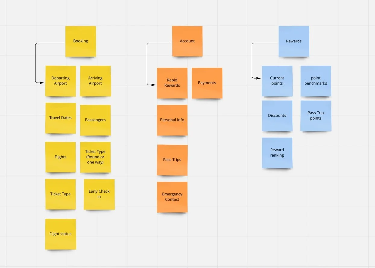 Cardsorting was used to generate different user tasks. The most common tasks involve booking a flight, inputting criteria, looking at account information. Development of user tasks aided in the creation of the sitemap.