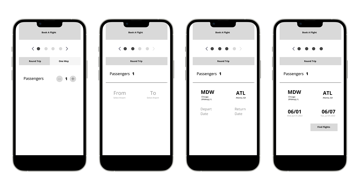 Customers want to be directed towards booking a flight so they can enter their criteria and look through available flights. Most important aspect of an airline app is being able to check flight availability to assess if the flight works for the customer’s plans.